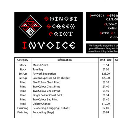 Once all of the details have been worked out, we will send you a final quote. When this has been given the green light we will send you a pro-forma invoice, which is for the cost of the stock (garments). Once the pro-forma has been paid we will start to process your order. This is the last chance you will have to make any amendments to your order.